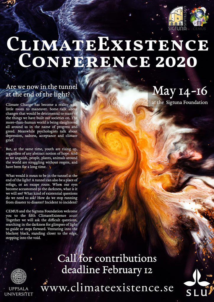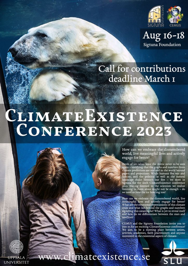 CEMUS and the Sigtuna Foundation invite you to join us for an exciting ClimateExistence conference! We aim to be a meeting place between artists, activists, academics, faith practitioners and anyone interested in the existential aspects of climate.