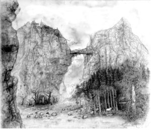 Mattias Bäcklin’s artistry moves between creation and decay, life and death. Art historical references meet ecology and metaphysics. Inspiration is often drawn from the knowledge the artist has acquired over the years as an ornithologist and insect collector as a hobby. Field notes, childhood memories as well as actual places are woven together with folklore and legends into the fragmentary narratives that recur in the drawings. Human artifacts and buildings, often in ruins, meet mountain landscapes, forests, mammals, birds, insects and organic forms. Civilization and nature are linked together to create a third alternative, on the border between present and origin. While traces of human activity often carry a dystopian undertone, the non-human pristine nature emerges all the more harmonious, like fleeting memories from a more original existence.