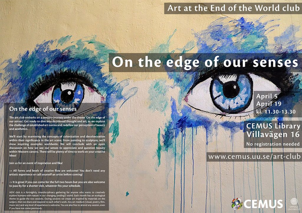 Hosted and organized by Sara Lopez Barreiro and Eva Gielen, Course Coordinators at CEMUS and the course Perspectives on Climate Change – Ecopsychology, Art and Narratives, 7.5 credits.
