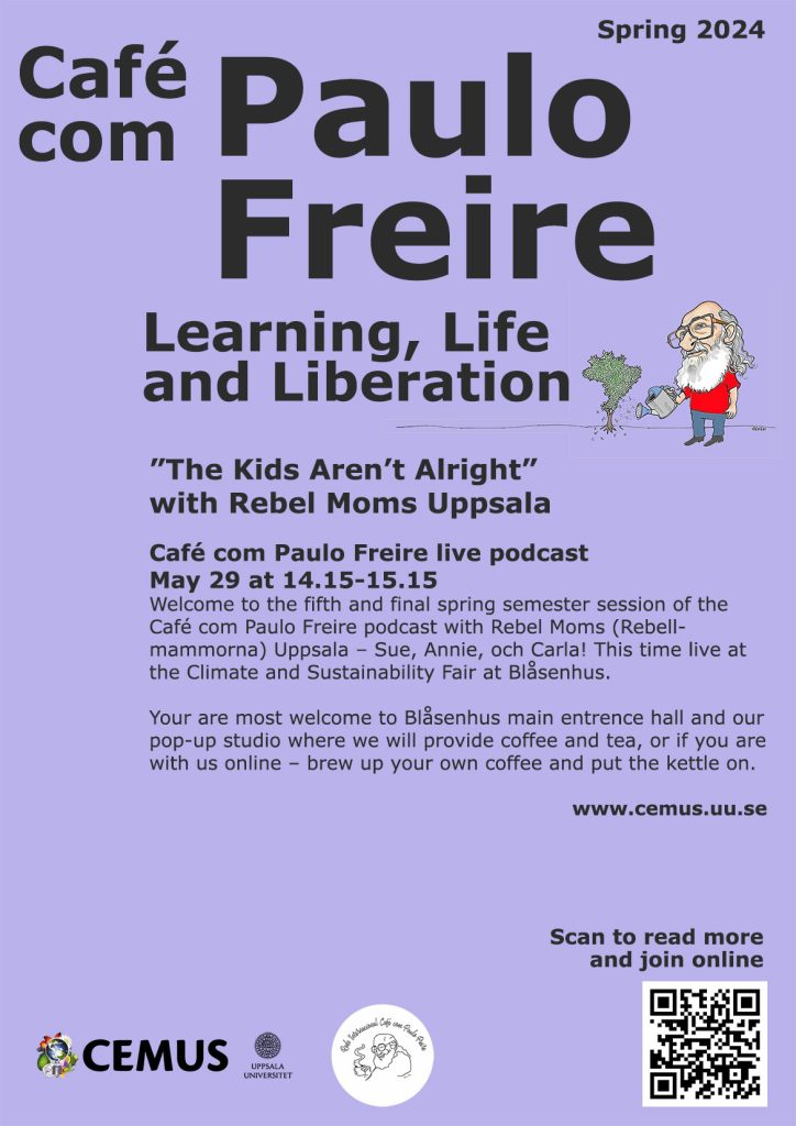Welcome to the fifth and final spring semester session of the Café com Paulo Freire podcast with Rebel Moms (Rebellmammorna) Uppsala! This time live at the Climate and Sustainability Fair at Blåsenhus.