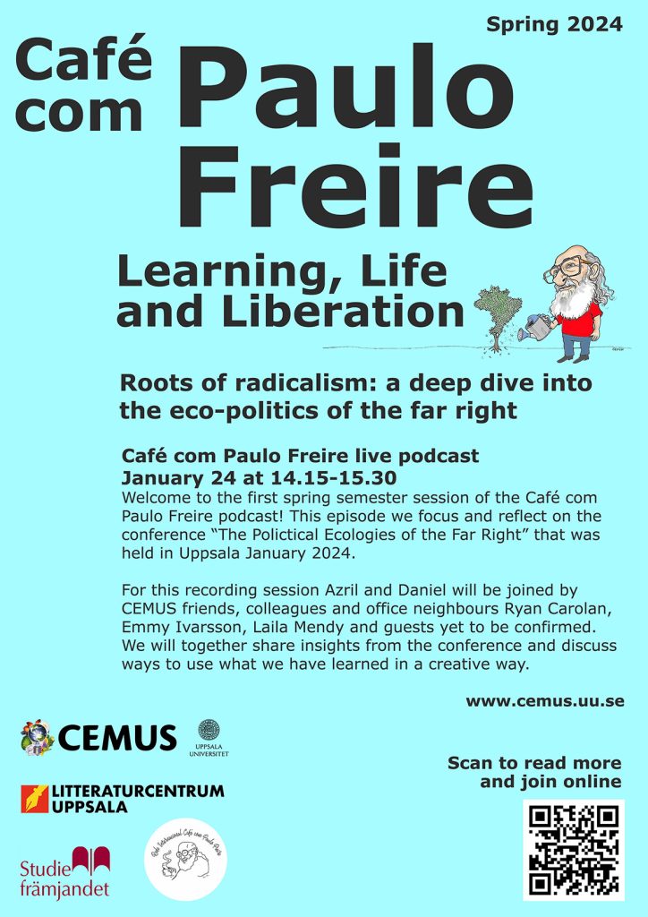 Welcome to the first spring semester session of the Café com Paulo Freire podcast! This episode we focus and reflect on the conference “The Polictical Ecologies of the Far Right” that was held in Uppsala January 2024.